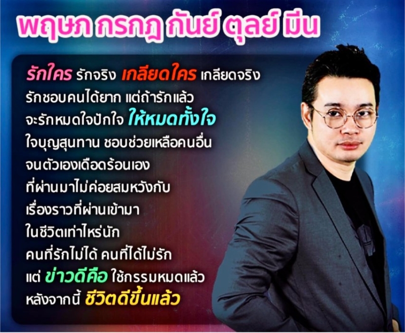 เมื่อวันที่ 9 ต.ค. 67 ที่ผ่านมา หมอกฤษณ์ ศุกฤษฎ์ ปทุมศรีวิโรจน์ นักโหราศาสตร์ชื่อดัง อันดับต้นๆของประเทศ ได้ออกมาทำนายดวงชะตา ทั้ง 5 ราศี คือ พฤษภ กรกฏ กันย์ ดุลย์ มีน