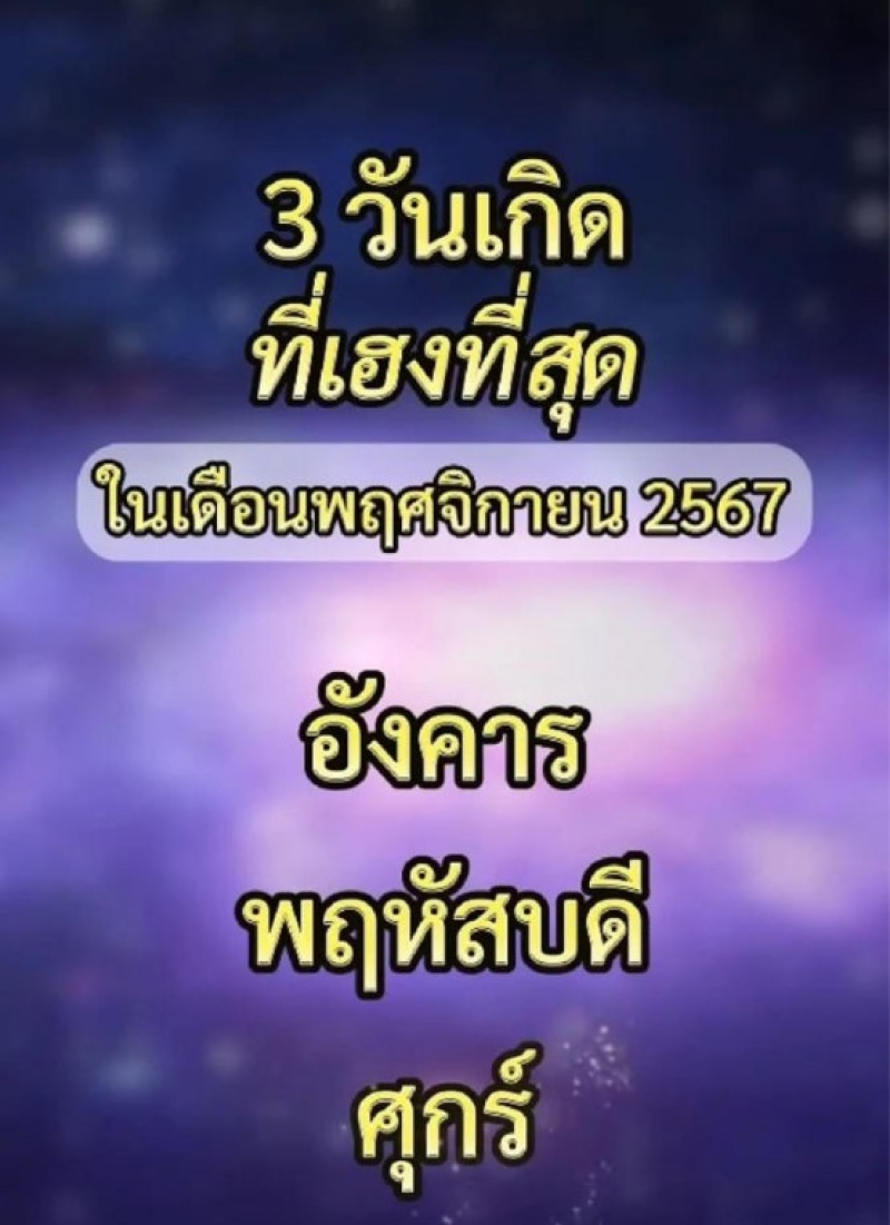 3 วันเกิด ดวงดีที่สุดในเดือนพฤศจิกายน 2567 เป็นต้นไป โดยในระยะนี้คน 3 วันเกิด ดวงจะเด่นมาก รวมถึงการริเริ่มกิจการมั่นคงถาวร ได้แก่