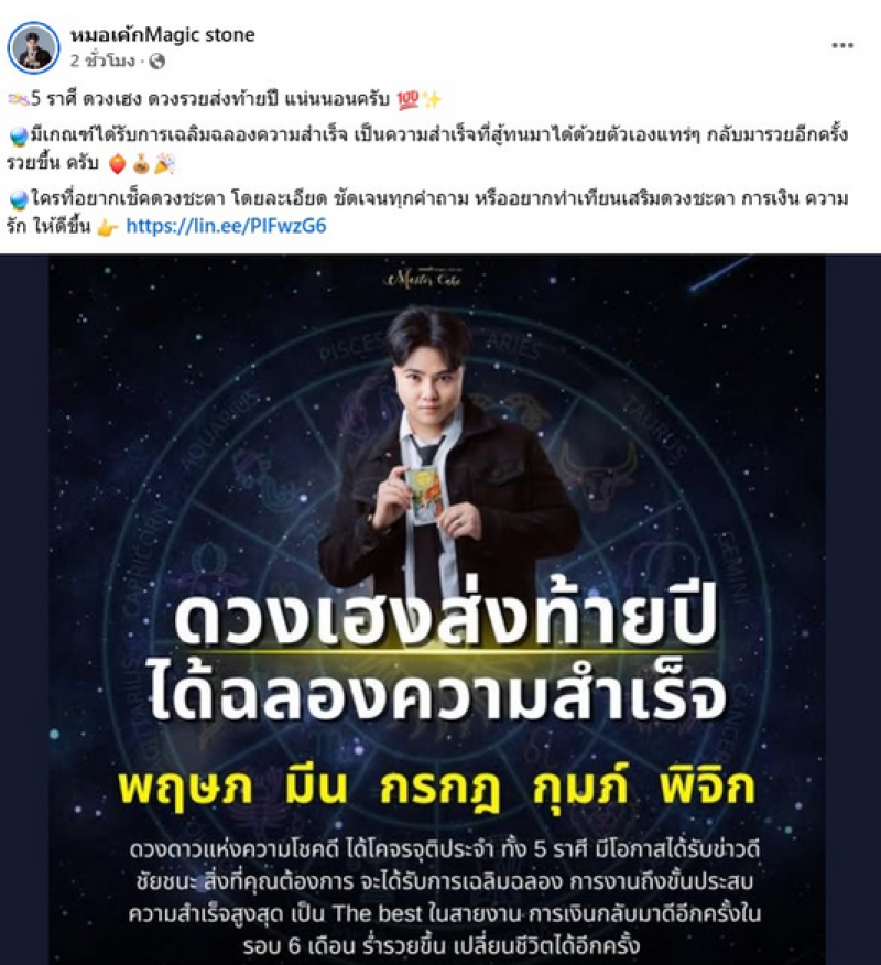มอเค้กMagic stone ได้ออกมาเปิดคำทำนายดวงชะตา 5 ราศี ดวงเฮง ดวงรวยส่งท้ายปี แน่นนอน มีเกณฑ์ได้รับการเฉลิมฉลองความสำเร็จเป็นความสำเร็จที่สู้ทนมาได้ด้วยตัวเองแทร่ๆ กลับมารวยอีกครั้ง รวยขึ้นดวงเฮงส่งท้ายปี ได้ฉลองความสำเร็จ พฤษภ มีน กรกฎ กุมภ์ พิจิก