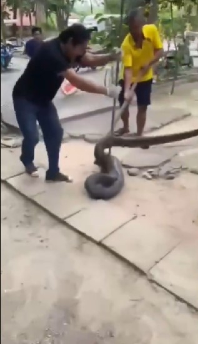 ทันทีที่เปิดฝาท่อดู ทั้ง จนท. ชาวบ้าน พระเณร พากันตกตะลึงกับภาพที่เห็น เนื่องจากมีงูเหลือมขนาดใหญ่ถึง 3 ตัว นอนรัดพลอดกันอยู่ภายในท่อ จนท.และชาวบ้าน จึงช่วยกันดึงตัวงูออกมาทั้งหมด พบเป็นงูเหลือมขนาดยาว 3 เมตรเศษ 2 ตัว อีกตัวยาว 2 เมตรเศษ โดยใช้เวลาช่วยกันจับอยู่นานประมาณเกือบ 20 นาที จากนั้นจึงเอาใส่กระสอบเพื่อนำไปปล่อยยังจุดอื่น