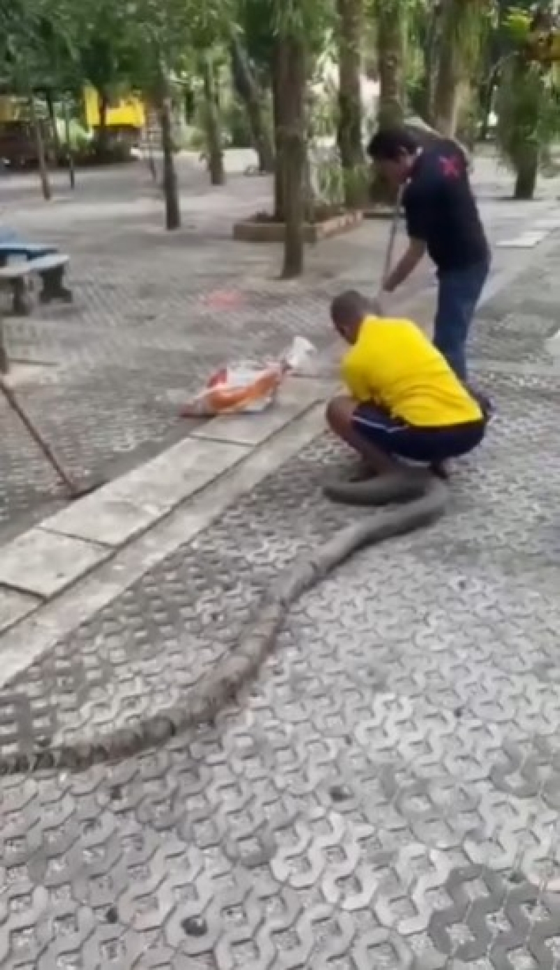 เจ้าหน้าที่กู้ภัยที่ร่วมจับงู ให้ข้อมูลว่า ช่วงเช้าที่ผ่านมา ได้รับแจ้งจากพระในวัด ว่าน่าจะมีงูเหลือมขนาดใหญ่เลื้อยซุกอยู่ในท่อระบายน้ำภายในวัด เนื่องจากพระสังเกตเห็นฝาท่อปูนมีเสียงดัง เชื่อว่าน่าจะมีอะไรอยู่ในท่อ พอใช้ไฟฉายส่องเข้าไปดูถึงพบว่าเป็นงูเหลือม เมื่อเจ้าหน้าที่กู้ภัยไปถึงก็เปิดฝาท่อตรวจสอบ ก็ตะลึงเมื่อพบกับงูเหลือมขนาดใหญ่ถึง 3 ตัว เบื้องต้นคาดว่างูตัวที่เล็กที่สุดน่าจะเป็นงูตัวเมีย ส่วนอีก 2 ตัว น่าจะเป็นงูตัวผู้ เชื่อว่าน่าจะมาจับคู่ผสมพันธุ์