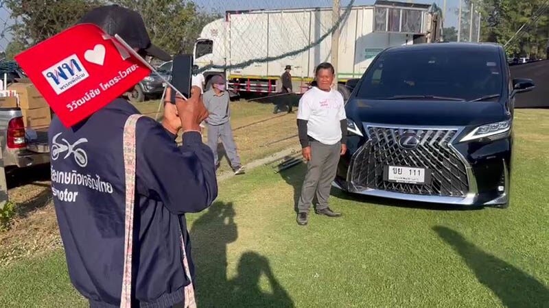 ขณะที่ด้านนอกเวทีปราศรัย มีประชาชนพากันมาถ่ายรูปคู่กับรถยนต์ของนายทักษิณที่ใช้เดินทางมาปราศรัย พร้อมส่องหมายเลขทะเบียนรถ เพื่อนำไปหาซื้อลอตเตอรี่ เสี่ยงโชคงงดวันที่ 1 ก.พ. 2568 โดยเป็นรถยนต์เลกซัส หมายเลขทะเบียน ขย 111 กรุงเทพมหานคร