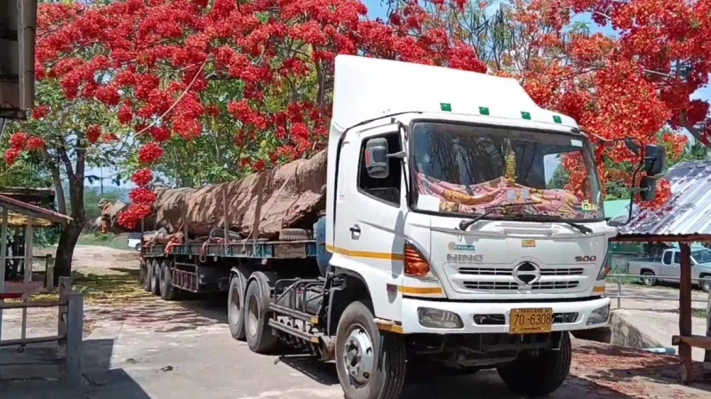 ด้าน นายเดชา จันบุญศรี ผู้ใหญ่บ้านบ้านไร่ฝาย หมู่ 11 เล่าว่า ต้นตะเคียนต้นนี้มีน้ำหนักราว 45 ตัน พอรถคันที่ 1 เข้ามาจะทำการเคลื่อนย้าย ต้นตะเคียนหนักจนรถเคลื่อนย้ายไม่ได้ จนต้องเปลี่ยนรถ เป็นรถคันที่ 2 พอออกตัวมาได้เพียงหน่อยเดียว รถก็เกิดไหล และเกิดความเสียหาย จนต้องนำรถคันที่ 3 เข้ามาดำเนินการเคลื่อนย้าย จึงได้สำเร็จ โดยในช่วงเช้า มีการเข้าร่างทรงบอกว่ายังไงก็ขนย้ายไม่สำเร็จ จะต้องทำการตั้งขันธ์ 5 แล้วองค์ของแม่นางตะเคียนจะพาต้นตะเคียนไปที่วัดเอง ซึ่งหลังทำการตั้งขันธ์ 5 ก็สามารถเคลื่อนย้ายต้นตะเคียนยักษ์ออกมาจากจุดที่พบเจอ เข้าวัดเป็นที่เรียบร้อย