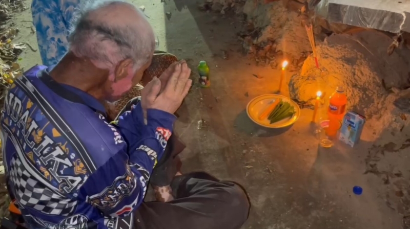 และตนก็ได้หลับอีกครั้ง โดยผีผู้หญิงที่มาเข้าฝัน มีลักษณะรูปร่างตัวดำผมยาว และผีผู้ชายตัวสูงใหญ่ และมีผีเด็กตามมาด้วย ผี 3 ตนนี้น่าจะเป็นผีพ่อแม่ลูก ได้บอกว่าถ้าอยากได้โชคลาภ โชคอยู่ไม่ใกล แต่ต้องมาขอโชคตอนเวลา 23.30 น.เท่านั้น เพราะเป็นเวลาที่ประตูผีเปิด และนายตุ๋ยได้ตื่นขึ้นมา ก่อนตนเองจะพบเจอกับจอมปลวก รูปร่างประหลาดคล้ายเต่าอยู่ข้างเปลที่ตนเองนอน จึงได้ชวนเพื่อนบ้านมาทำพิธีขอโชคในคืนนี้ที่ผ่านมา