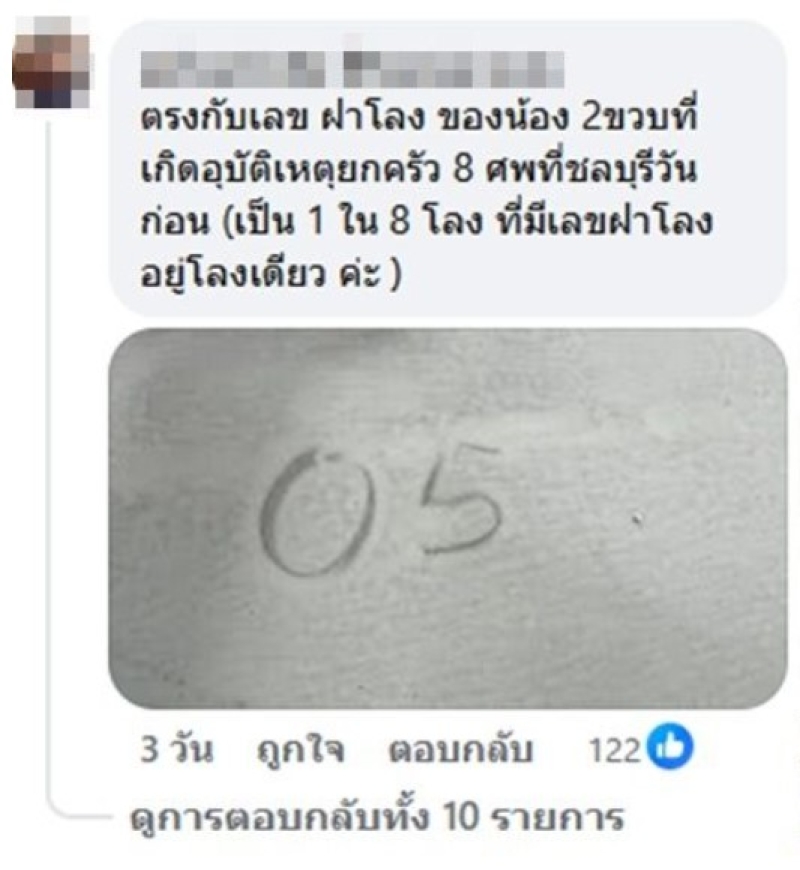 ขณะมีคอมเมนต์ชวนขนลุกบอกว่าเลข กุ้ง สุธิราช 50 ตรงเลขฝาโลงเด็กน้อย 2 ขวบ ที่เสียชีวิตจากอุบัติเหตุ รถถูกชนสูญเสีย 8 คนในครอบครัว ซึ่งมีการบอกด้วยว่าเป็นโลงเดียวที่มีเลขด้วย ขนลุกมาก
