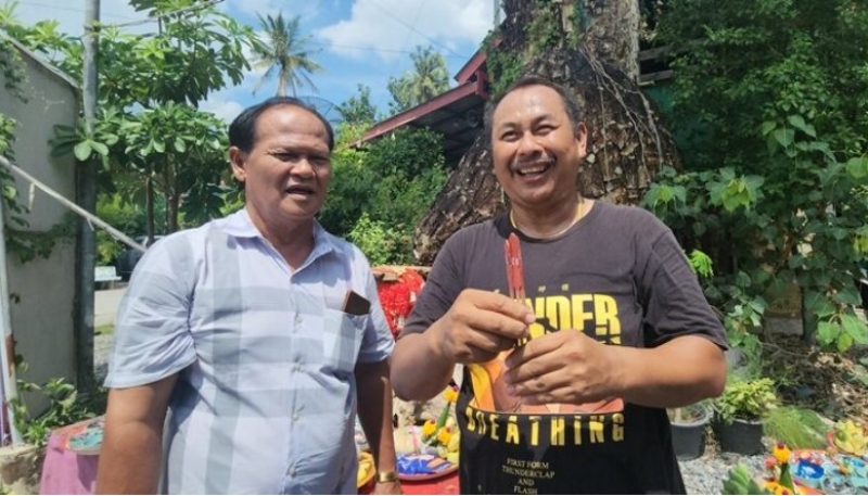 โดยการเขย่าเซียมซีได้หมายเลข 25 เลข 18 และ 21 โดยอธิษฐานขอพรกับองค์พระราหูว่า หากได้โชคหรือรางวัลใหญ่ จะนำเงินส่วนหนึ่งมาร่วมบูรณะจัดสร้างองค์ให้แล้วเสร็จเพื่อให้ประชาชนได้มากราบไหว้ขอพร