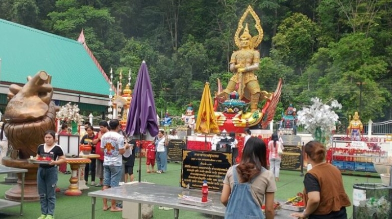 และคนที่มาจะอธิษฐานขอเลขเด็ดเผื่อจะถูกรางวัลที่ 1 คนที่ 16 ซึ่งนอกจากจะมีคนมาขอพร ขอโชคลาภกับองค์ท้าวเวสสุวรรณทรงราหู(ท่านทองล้น) แล้วบางคนยังมาขอพรให้ขายที่ดิน-ขายบ้านได้ซึ่งก็สำเร็จตามที่ขอ สามารถขายที่ดินและบ้านกันได้แล้วกว่า 50 รายกันแล้ว ต่างนำสิ่งของมาแก้บนกันและร่วมทำบุญกับทางวัดเขาช่องลมกัน