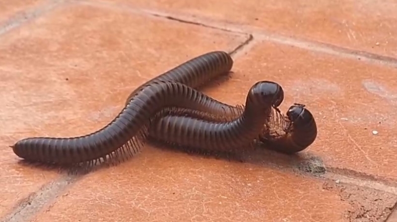 ขาเรียงแน่นเป็นระเบียบตลอดลำตัว ที่กำลังกอดรัดฟัดเหวี่ยงกันกลางลานวัดอย่างหวานชื่นบนพื้นลานกระเบื้องหน้าวิหารพระธาตุ บางคนมองเป็นเหตุการณ์แปลกประหลาด โดยพบเป็นกิ้งกือยักษ์ ที่พบอยู่ในลานวัดพระธาตุจอมทอง เป็นสัตว์หน้าฝนที่อยู่ในช่วงผสมพันธุ์ซึ่งเป็นพฤติกรรมทางธรรมชาติ