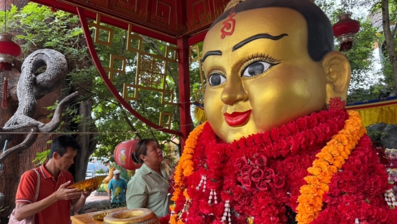 จากการสอบถาม น.ส.อนงค์นาฏ เสือฉิม อายุ 49 ชาวจังหวัดตาก ที่เดินทางนำน้ำแดงจำนวน 100 แพ็ค มาแก้บนกุมารทองเจ้าสัวเฮง หลังขอพรออนไลน์กุมารทองเจ้าสัวเฮงให้ได้เงินแสน และได้จริงในวันรุ่งขึ้น