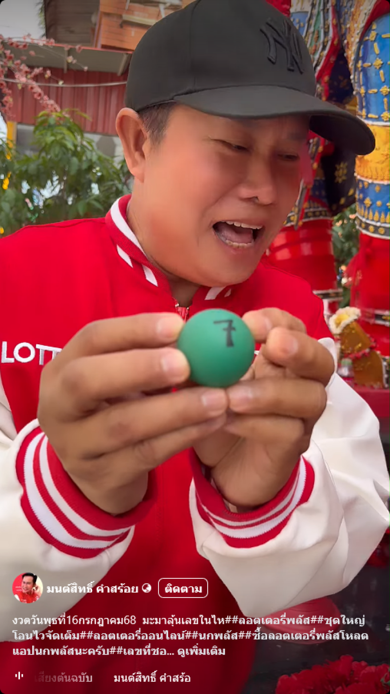 ที่ล่าสุดเจ้าตัวได้เดินทางขอพรท้าวเวสสุวรรณ พร้อมล้วงไหปิงปองขอเลข ซึ่งเลขที่ได้คือ 9 , 7 , 7