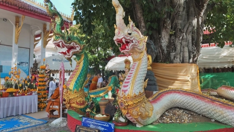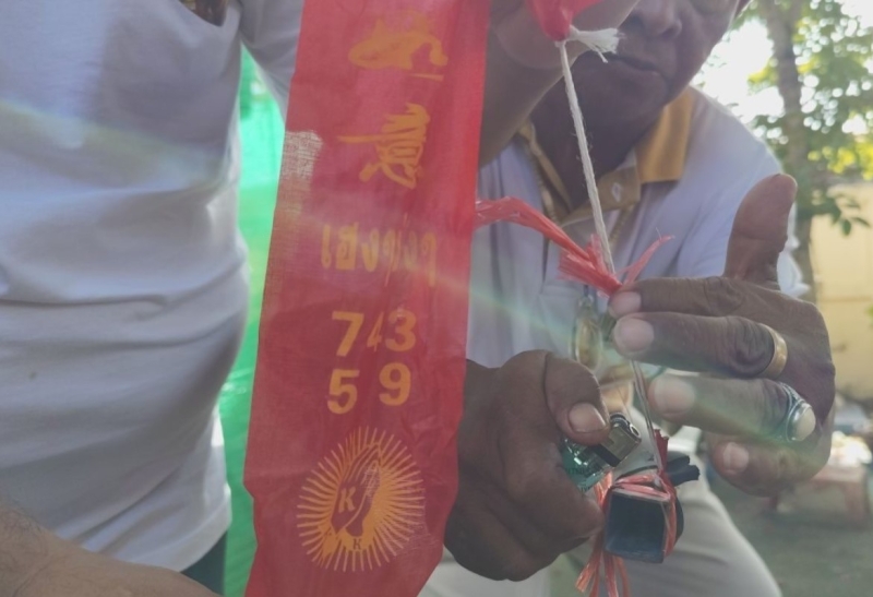 จากนั้น ระหว่างการประกอบพิธีบวงสรวงสักการะปิดทอง ได้มีการจุดประทัด 1,000 นัด ทำให้ประชาชนที่เข้าร่วมพิธี ต่างพากันใจจดจ่อฮือฮากับเลขเด็ดหางประทัด ปรากฎชัดเจน 743 และ 59 ชาวบ้านเตรียมนำไปเสี่ยงโชคตามความเชื่อ ในงวดวันที่ 1 สิงหาคม ที่จะถึงนี้