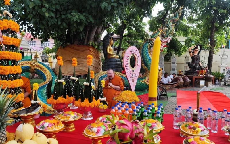 พร้อมประกอบพิธีบวงสรวง หลวงพ่อพุทธวิมายะ หลวงพ่อดำ หลวงพ่อแดง และพิธีทักษิณานุปาทาน ถวายแด่พระโพธิวรญาณ (หลวงพ่อเขียว) โดยมีพระสงฆ์ 9 รูป เจริญพระพุทธมนต์ และมีนายธีระวัฒน์ มวยดี สมาชิกสภาเทศบาลตำบลพิมาย เป็นประธานดำเนินงาน