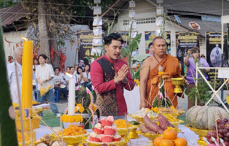 ทั้งนี้พิธีเริ่มด้วยหมอพราหมณ์ ประกอบพิธีบวงสรวงเทพยดา สิ่งศักดิ์สิทธิ์ หน้าโต๊ะเครื่องเซ่นไหว้ คาว หวาน ผลไม้มงคล เพื่อความสิริมงคลตามลำดับ อย่างไรก็ตามก่อนที่หมอพราหมณ์จะเริ่มพิธีบวงสรวง บรรยากาศบริเวณพิธีมีแสงแดดสาดส่องร้อนอบอ้าวจนผู้เข้าร่วมพิธีนับพันคนต้องหาที่ร่มเงาร่วมพิธี แต่เมื่อหมอพราหมณ์