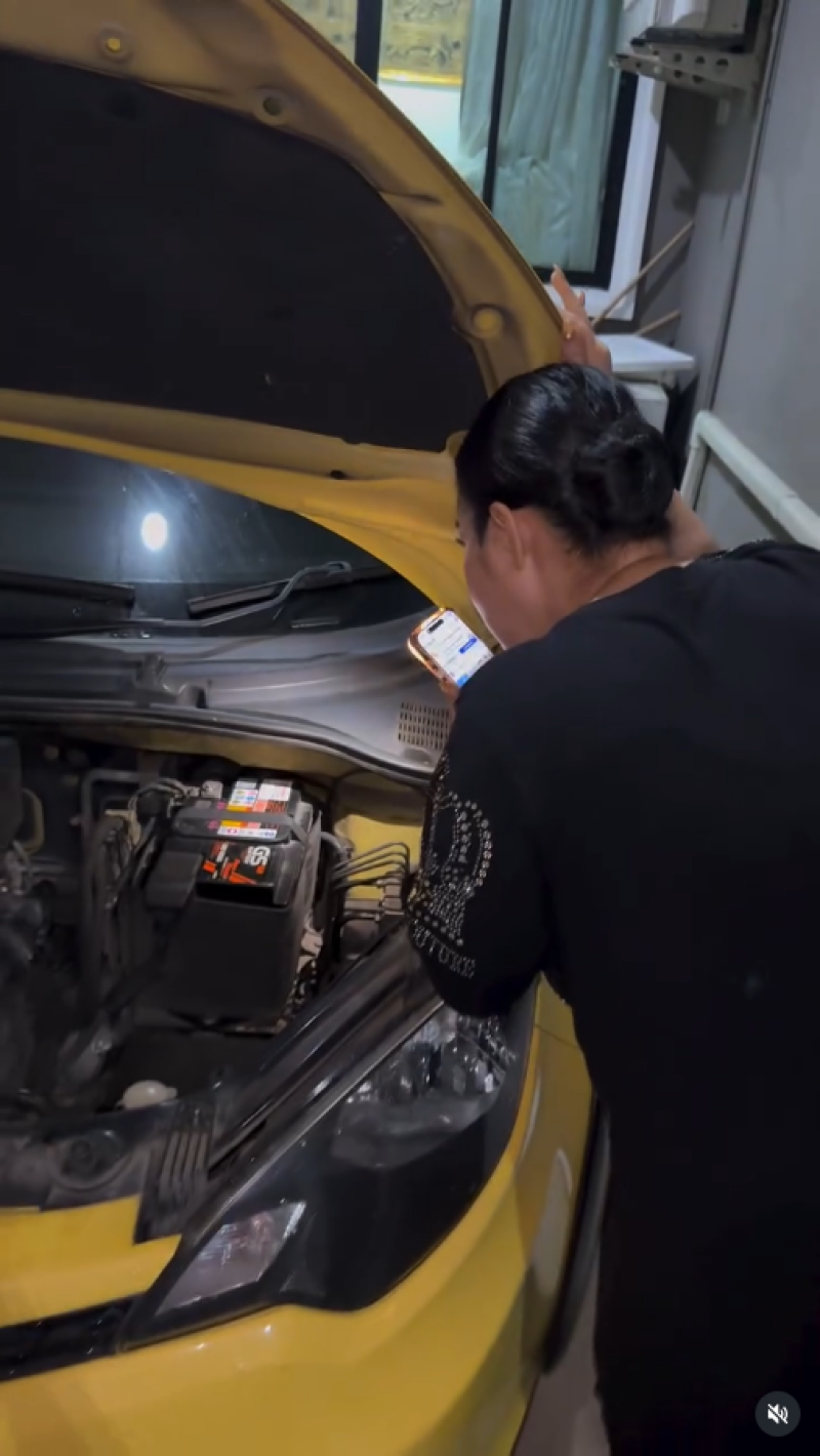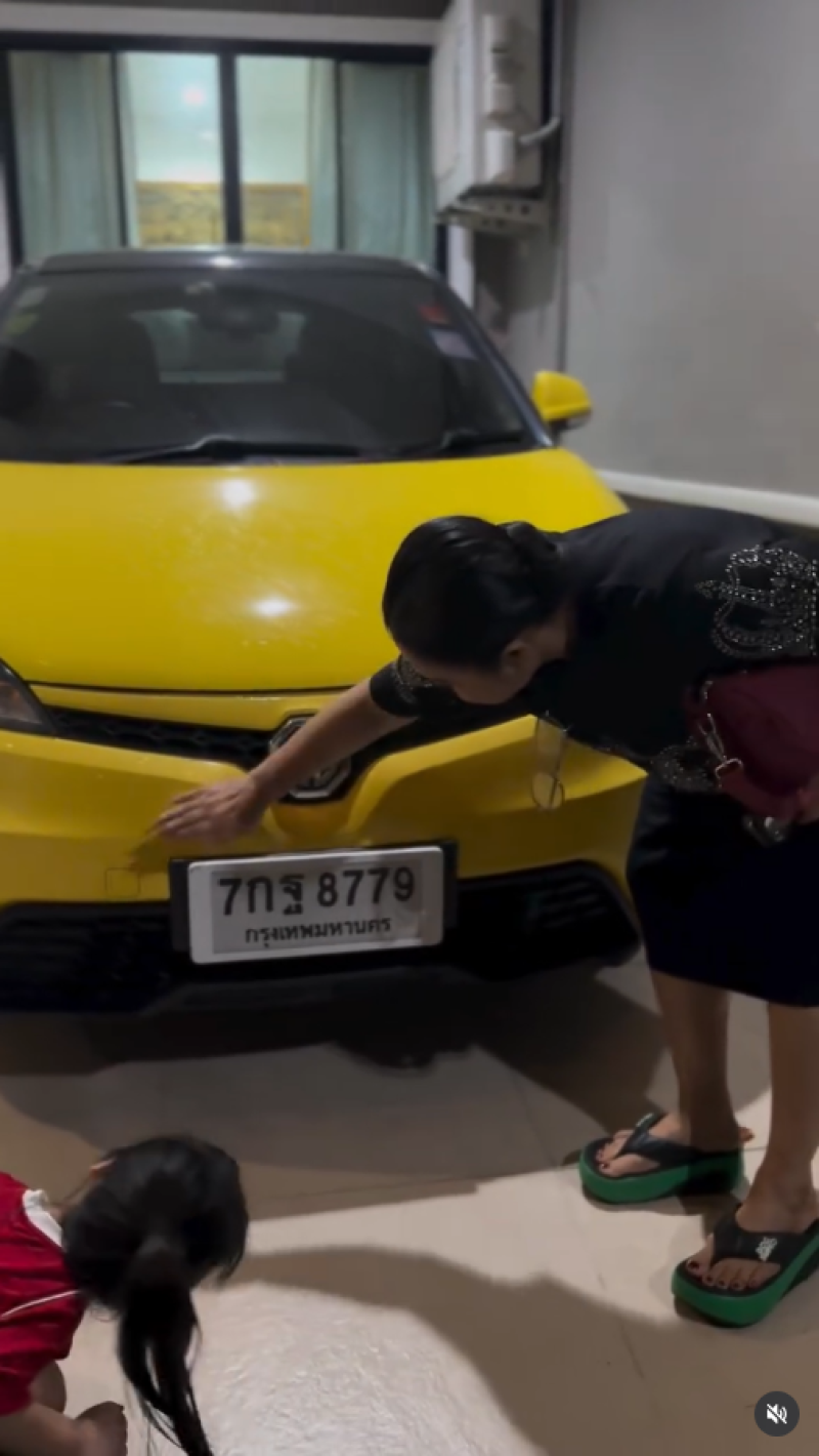 พร้อมเขียนแคปชั่นว่า มาบ้านแทนที่จะได้พัก แม่ต้องมาเอาแมวออกจากรถอีก แมวเข้าไปทำไมในเครื่องยนต์ล่ะลูก เอ๊ะ! พร้อมเผยภาพทะเบียนรถให้เห็นชัดๆ หมายเลข 8779