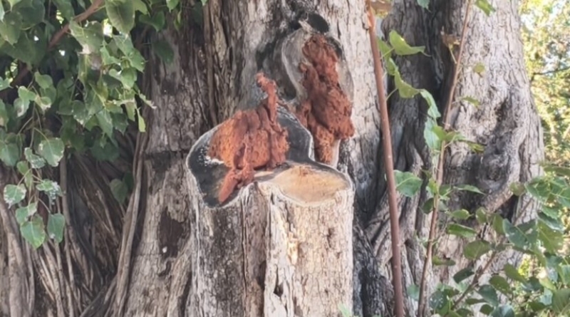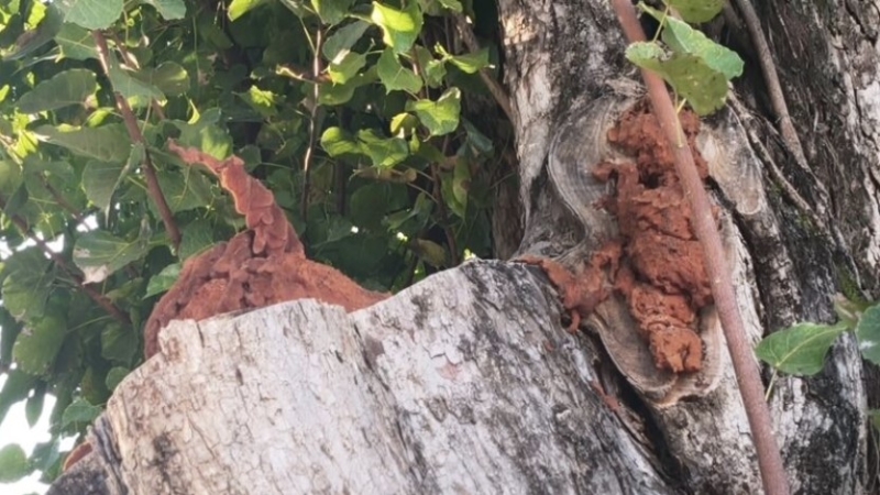 จากการสังเกตพบว่า วัตถุดังกล่าวมีลักษณะเป็นเนื้อแข็งคล้ายเชื้อราหรือเห็ดไม้ สีแดงน้ำตาลอมส้ม ขึ้นเกาะแน่นอยู่บริเวณรอยตัดของกิ่งไม้ มีขนาดกว้างประมาณ 20 เซนติเมตร ยาวประมาณ 40 เซนติเมตร และสูง 25 เซนติเมตร