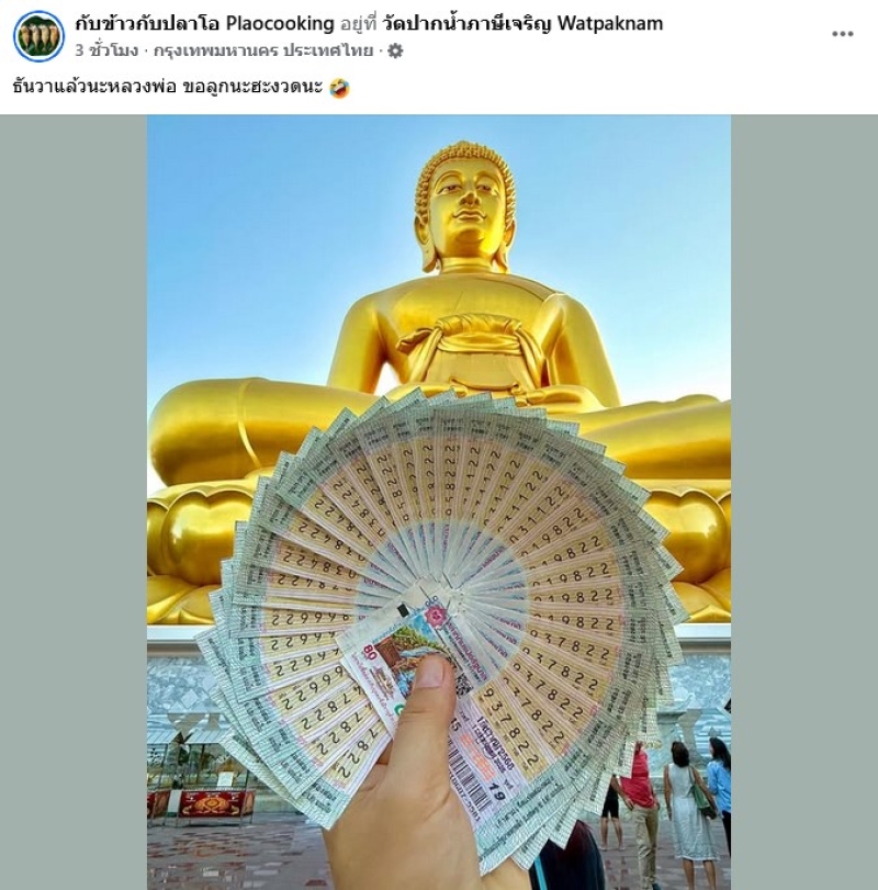 โดยก่อนหน้านั้น ทางเพจ กับข้าวกับปลาโอ Plaocooking ได้โพสต์ว่า ธันวาแล้วนะหลวงพ่อ ขอลูกนะฮะงวดนะ โดยได้ไปขอกับ วัดปากน้ำภาษีเจริญ Watpaknam