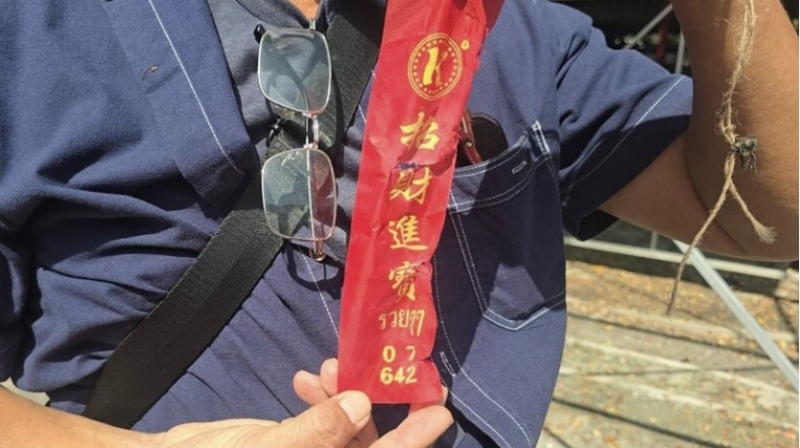 สาธุชนที่มาวัดต่างตื่นตาตื่นใจ ต่างนำพวงมาลัยสีแดง มาเพื่อเตรียมคล้อง ก่อนที่จะใหเสาธุชนคล้องมาลัยหลวงพ่อแป๊ะได้ทำพิธีเบิกเนตร เสียงประทัดดังสนั่นหวั่นไหว หลายสายตาจับจ้องไปที่หางประทัดที่จุดเมื่อสิ้นเสียงประทัดต่างวิ่งกรูกันเข้าไปดู เจ้าหน้าที่ได้ชูป้ายหางประทัด เป็นเลข 07 กับ 642