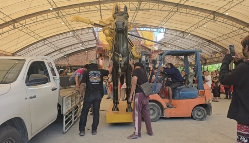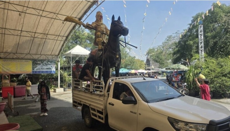 ได้สั่งหล่อไว้ที่โรงงานประติมากรรม นำแบบเทพเจ้ากวนอูออกศึกนั่งอยู่บนหลังม้า ถือทวนรบ ซึ่งชาวจีนนิยมพิมพ์นี้มาก โดยสั่งหล่อไว้เมื่อเดือนสิงหาคม 2568 ซึ่งเสร็จสิ้นพร้อมรับมอบในเดือนธันวาคม 2568 แต่เนื่องจากติดภารกิจ ไม่สามารถเดินทางมาถวายด้วยตนเองได้ จะเดินทางมากราบไหว้ในช่วงเทศกาลตรุษจีน เพราะบรรดาบริษัทร้านค้าหยุดประกอบธุรกิจหลายสัปดาห์ จึงได้มอบให้โรงหล่อนำมาถวายให้หลวงพ่อก่อน เพื่อให้คนที่นับถือมากราบไหว้ขอโชคกัน โดยที่ทางโรงหล่อได้ประสานมาเมื่อวันที่ 6 ธ.ค.68 ว่า ในวันที่ 7 ธ.ค.68 จะนำรูปหล่อเทพเจ้ากวนอูมาส่งให้ที่วัด และให้จัดเตรียมสถานที่ไว้ด้วย