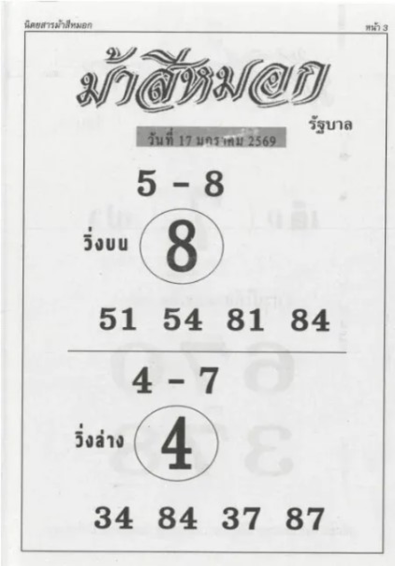 5. เลขเด็ด ม้าสีหมอก มาแล้ว ลุ้นงวดที่ 17 ม.ค. 69