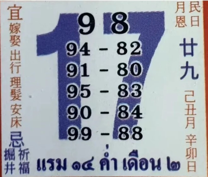 8.เลขเด็ด ปฏิทินจีน ลุ้นวันที่ 17 ม.ค. 69