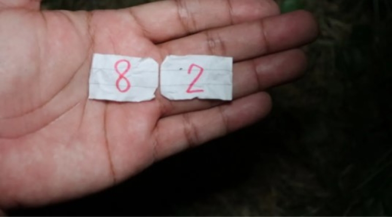 เมื่อนำกระดาษหย่อนลงไปแล้ว รอไม่นาน “พญาบึ้ง” ก็ได้นำกระดาษตัวเลขขึ้นมาวางไว้ปากรู โดยงวดนี้ได้ 3 ตัว เปิดออกดูได้ตัวเลข 905 และ 2 ตัว เปิดออกดูพบเป็นตัวเลข 82 ไปเสี่ยงดวง.