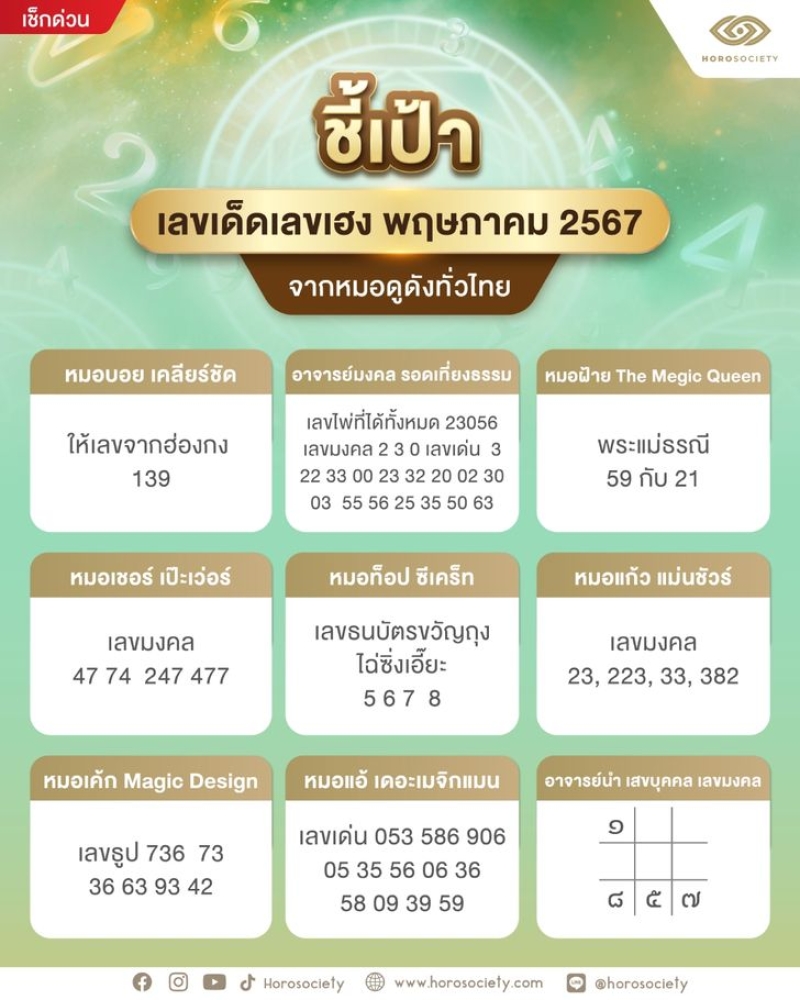โดยทางเพจ เลขเด่นเลขดัง ได้รวบรวมมาจากนักพยากรณ์ดังมาให้ได้ตามกันอีกแล้ว เรียกว่าตั้งใจจะมอบโชคให้แฟนๆ ทุกท่านกันอย่างไม่หยุดหย่อน พร้อมแล้วมาดูมาตามกัน แถมเคล็ดลับเสริมดวงเสี่ยงโชค ให้เฮง ปัง ยิ่งๆ ขึ้นไปอีก