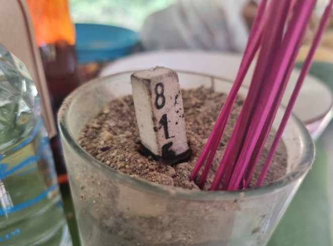 นักเสี่ยงโชค ต่างไม่พลาด ที่จะหาเลขเด็ดจากพิธีดังกล่าว โดยได้จุดธูปเสี่ยงทายใสขณะประกอบพิธีเลี้ยงศาลปู่โป่ง ธูปปรากฏเลข 815