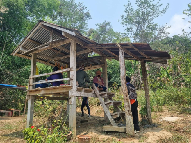 วันที่ 25 เมษายน 2569 ที่ท้ายสวนผลไม้ บ้านป่าหมู่ที่ 8 ต.แม่พูล อ.ลับแล จ.อุตรดิตถ์ ชาวบ้านห้วยใต้ หมู่ 8 ได้จัดเตรียมเครื่องบวงสรวง หัวหมูต้ม ไก่ต้ม อาหารคาวหวาน หมาก พลู บุหรี่ เหล้าแดง ผลไม้นานาชนิด ประกอบพิธีเลี้ยงศาลเจ้าปู่โป่ง