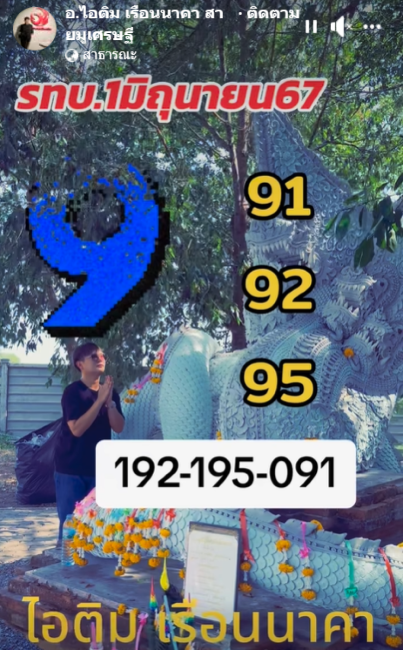 เรียกได้ว่า เป็นอีกหนึ่งบุคคลที่มักจะให้แนวทางในการหาเลข อย่าง อ.ไอติม เรือนนาคา สายมูเศรษฐี ที่มักจะออกมาให้อยู่บ่อยๆก่อนหวยออกนั่นเอง โดยบอกว่า แนวทางรัฐบาลไทยอาจารย์ไอติม งวดประจำวันที่ 1 มิถุนายน 67