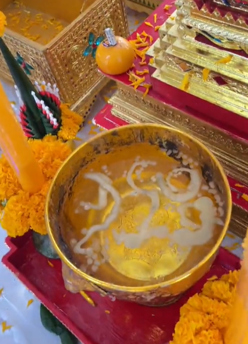 โดยงานนี้ไอซ์ ก้ไม่พลาดได้ถ่ายขันน้ำมนต์มาให้แฟนๆได้ชมกัน และเหล่าคอหวยเองก็พาเข้ามาตีเลขสนั่น เช่น 950,29,915,250,905 ซึ่งหากใครเห็นเป็นเลขอะไรลองดูกันเอาเองจ้า