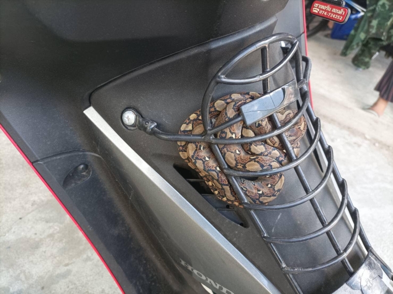 โดยเพจข่าว ข่าวเพชรบุรี 24ชั่วโมง งูเหลือมอุบในรถเครื่อง ที่หมู่ 9 ต.บางจาน เมืองเพชรบุรี อาสาฯเมือง147 และ167 ดำเนินการจับเป็นที่เรียบร้อย นำปล่อยคืนธรรมชาติต่อไป (เมื่อ14กค.67)