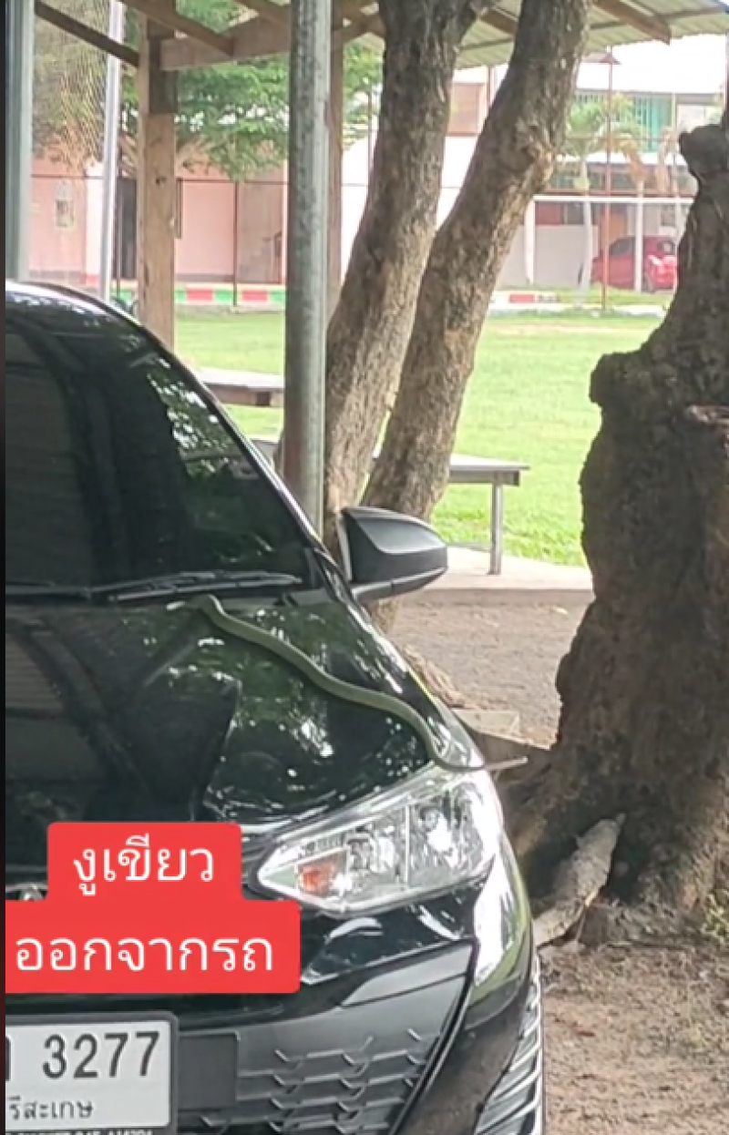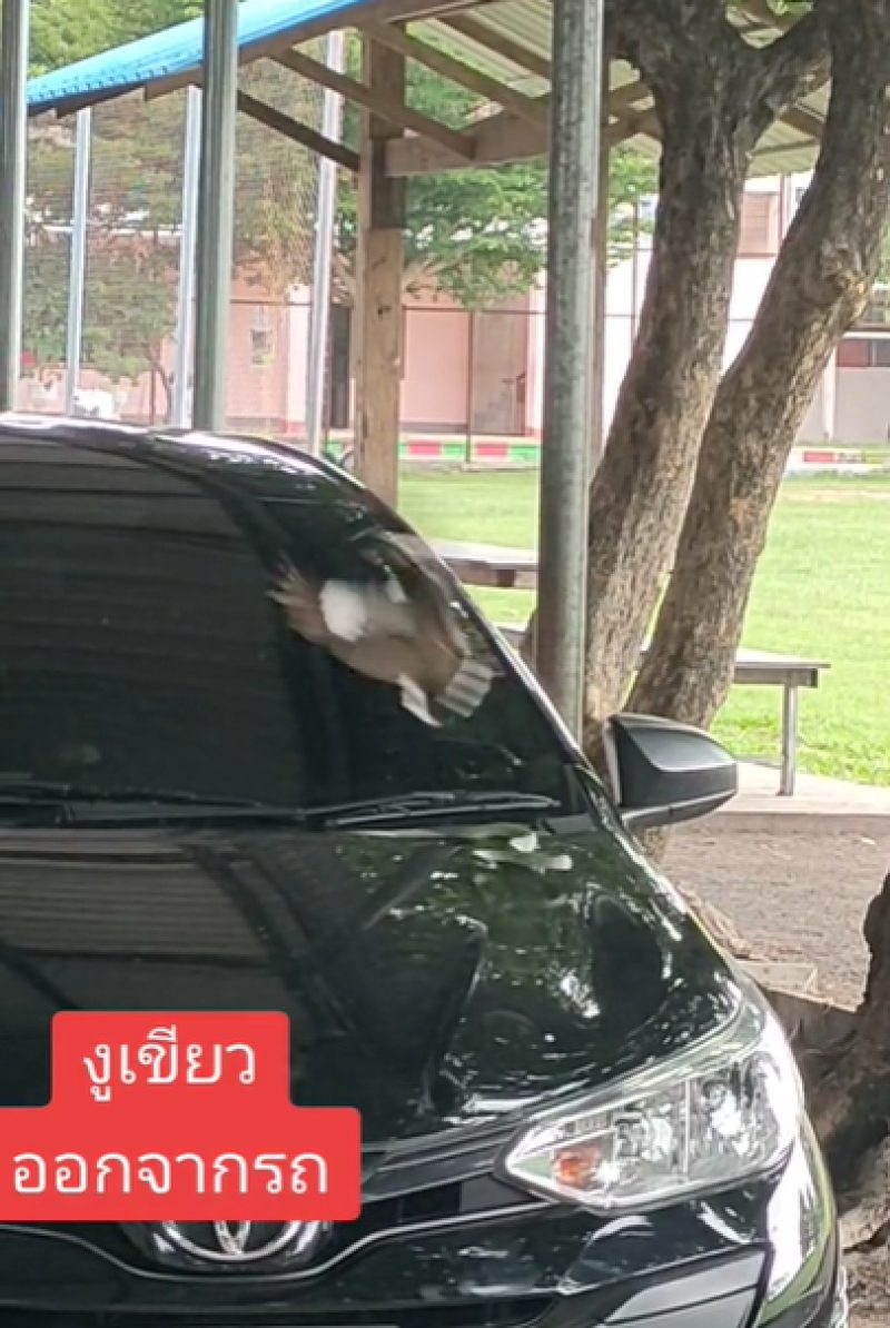 สาวกรี๊ดลั่น! เจองูสู้กับนกเอี้ยงบนฝากระโปรงรถ ชาวเน็ตแห่ส่องเลขป้านทะเบียนเพียบ ลุ้นงวด 1/8/67