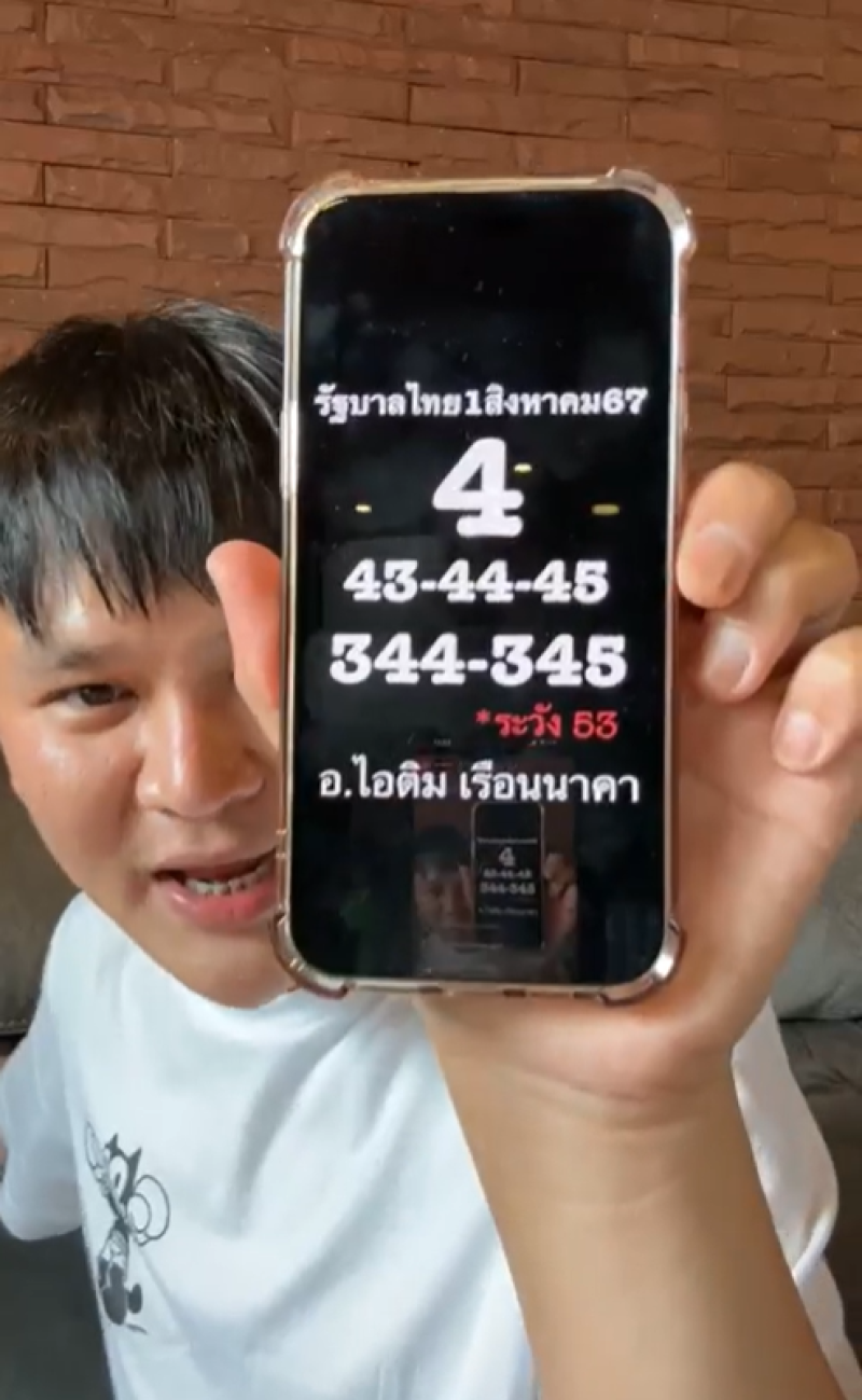 โดยทาง อ.ไอติม ได้เผยคลิป ระบุแคปชั่นว่า รัฐบาลไทย 1 ส.ค. 67 ซึ่งในคลิปได้ท้าไว้อีกครั้ง ว่า ถ้าเลข 4 ไม่มา จะเอาหน้าไปมุดขี้โคลน ทั้งหน้าทั้งตัว ทำโทษสนุกสนานกันไป ท้าแค่ 4 เท่านั้น และเลขที่ปรากฏขึ้นนั้นคือ 4-43-44-45-344-345 ระวัง 53