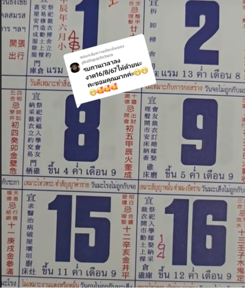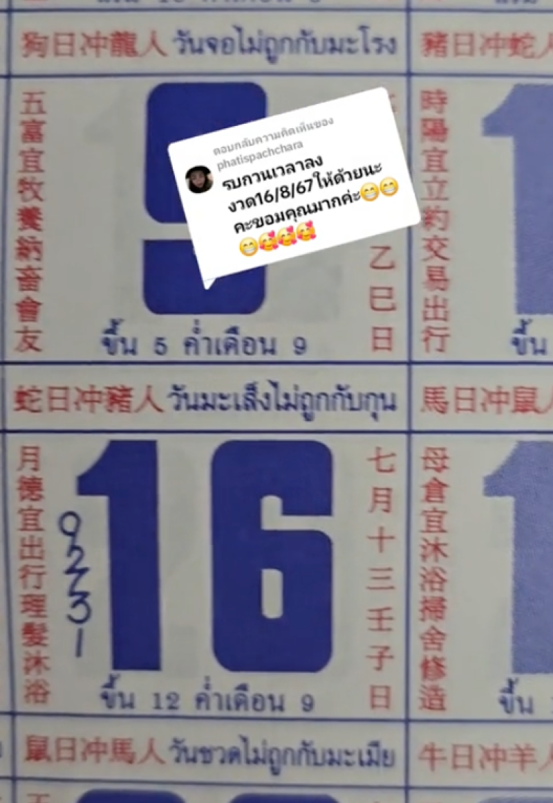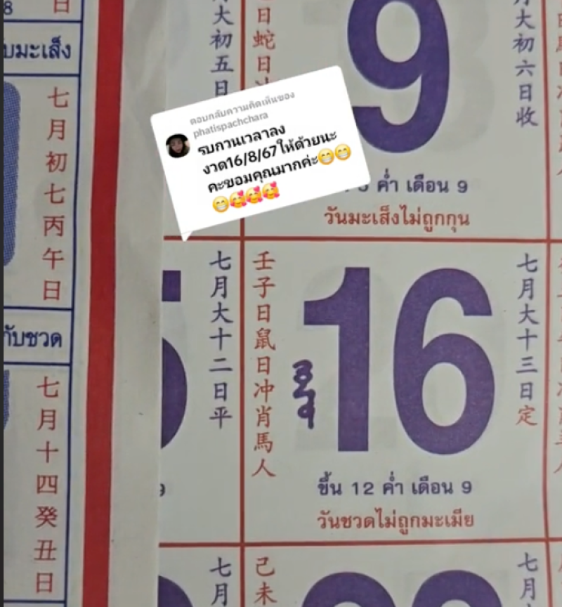 ใกล้เข้ามาแล้วลุ้นการออกรางวัลสลากกินแบ่งรัฐบาลงวดประจำวันที่ 16 สิงหาคม 2567 ล่าสุดผู้ใช้แอปพลิเคชัน TikTok ชื่อบัญชี nid_nid_49 ก็ได้ถ่ายคลิปแบ่งปันเลขปฏิทินจีน งานนี้ทำแฟนๆฮือฮา แห่ซื้อเลขตาม
