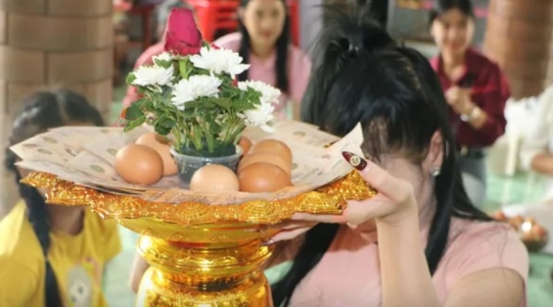 และร่วมถวายไข่ไก่ ข้าวสารถุงละ 5 กิโลกรัม ได้เสี่ยงทายเรื่องขอโชคลาภ และมีความมั่นใจมากเพราะว่าได้เลขตรงกับที่ลมีอยู่แล้วด้วย มีโชคงวดนี้หลายหมื่นบาท จึงนำไข่ไก่พร้อมกับพวงมาลัยและข้าวสารมาถวาย ส่วนงวดต่อไปคิดว่าใกล้ ๆ จะถึงวันออกสลาก ก็จะมาขอพรกับบ่วงนาคบาศอีกครั้ง และทราบว่าพระอาจารย์ยังนำไข่ที่นำมาถวายไปแจกชาวบ้านอีกต่อ เหมือนกับเราได้บุญ 2 ต่อ