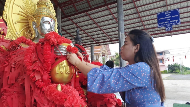 ปทุมธานี ท้าวเวสสุวรรณวัดมงคลรัตน์ให้โชคลุงเนตรคนขายล็อตเตอร์รี่เดือนเดียว4งวดรับทรัพย์แสนสาม ที่วัดมงคลรัตน์ คลอง 12 ต.ลำไทร อ.ลำลูกกา จ.ปทุมธานี บรรดาเหล่าสายมู ต่างทยอยเดินทางมากราบไหว้ขอพรกับท้าวเวสสุวรรณ ไอ้ไข่ พ่อปู่ลำไืร แม่วิมาลาแม่ตะเคียนอายุกว่า 200 ปี และ พญาครุฑมหาบารมีกันอย่างต่อเนื่องตั้งแต่ช่วงเช้าเป็นต้นมาในขณะที่สายมูยังได้มานั่งรอให้พระอธิการยุทธนา เกจิดัง(คลอง12) เจ้าอาวาสวัดมงคลรัตน์ทำพิธีเจิมคาถา น เศรษฐี น กินไม่รู้หมด ซึ่งเป็นคาถาเมตตามหานิยม บนหน้าผากและฝ่ามือ อีกด้วย