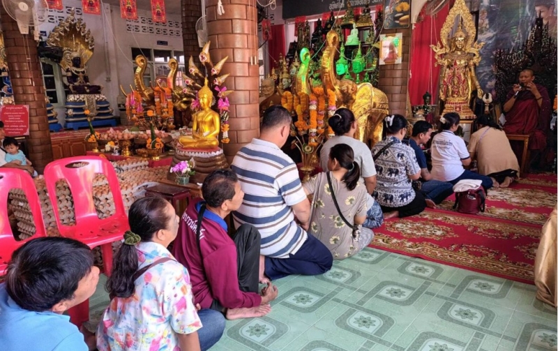 อีกทั้งบางคนอธิษฐานขอพรต่อบ่วงนาคบาศพร้อมจุดธูปได้เลขตามความประสงค์ ผู้ศรัทธาที่มามีความมุ่งมั่นถึงขนาดนั่งรอคิวเพื่อนำไข่ไก่ถวายเป็นเวลานาน โดยหลังจากนำไข่ถวายเสร็จแล้ว หลายคนได้นั่งเข้าแถว เพื่อรอให้ พระอาจารย์เอกธนัช อริยธัมโม เจิมที่ฝ่ามือทั้งสองข้าง เพื่อความเป็นสิริมงคล