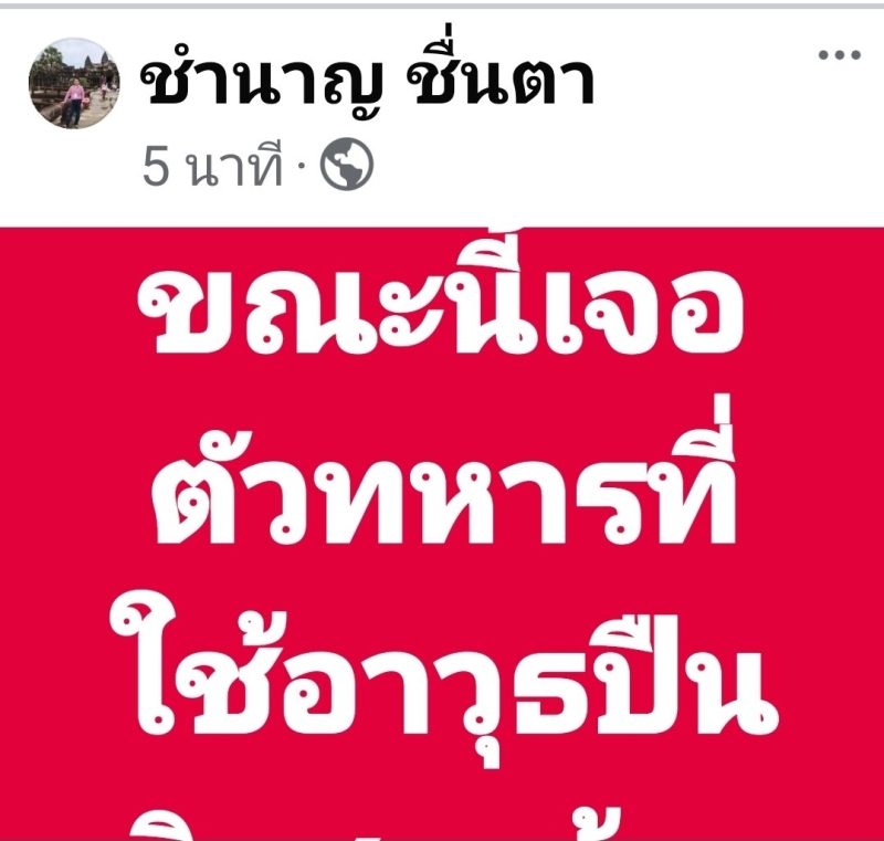 วันที่ 15 สิงหาคม 2568 ความคืบหน้าเหตุการณ์ พลทหารสังกัดกองร้อยทหารราบที่ 1623 หลบหนีออกจากที่ตั้งพร้อมอาวุธปืนเล็กยาวและกระสุนจำนวนหนึ่ง ก่อนใช้อาวุธกราดยิงชาวบ้านบริเวณใกล้วัดบ้านเขื่อนแก้ว อำเภอกาบเชิง จังหวัดสุรินทร์ เมื่อเวลาประมาณ 00.54 น. ส่งผลให้มีผู้บาดเจ็บ 2 ราย