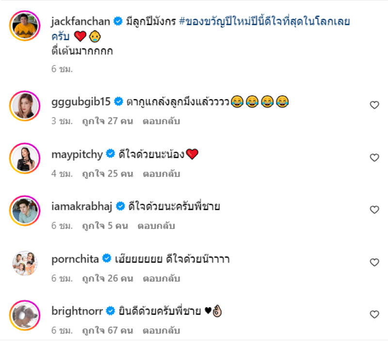 เรียกได้ว่า เป็นดาราและพิธีกรชื่อดัง อย่างแจ๊ค แฟนฉัน ที่ได้คบหาดูใจกับแฟนสาวสุดสวย อย่าง ใบหม่อน กิตติยา ที่ล่าสุดด้านหนุ่มแจ๊ด ออกมาประกาศข่าวดีผ่านทางอินสตาแกรมส่วนตัว โดยได้ระบุข้อความว่า มีลูกปีมังกร #ของขวัญปีใหม่ปีนี้ดีใจที่สุดในโลกเลยครับ ตื่เต้นมากกกก