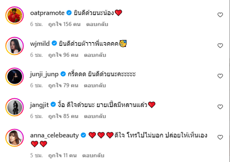 งานนี้ เหล่าเพื่อนๆและนนในวงการบันเทิงได้เข้ามาแสดงความยินดีและดีใจกับหนุ่มแจ๊ดด้วย และทางทีมข่าวก็แสดงความยินดีด้วยเช่นกันค่ะ