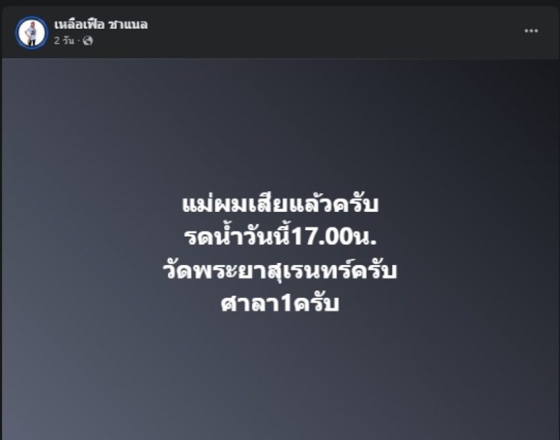 ต่อมาบอกรำลึกถึงคุณแม่ บอกว่า มันเป็นการตื่นมาเหมือนผมฝันว่าแม่ผมหนีไปไม่อยู่กับผม แต่มันก็เป็นความจริงที่ผมต้องพยามทำใจให้รับมันให้ได้ บ้านหลังนี้ไม่มีใครให้ผมคอยหยอก คอยนั่งกินข้าวด้วยแล้ว ไม่มีใครคอยถามผมอีกแล้ว