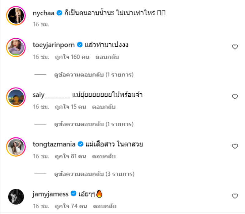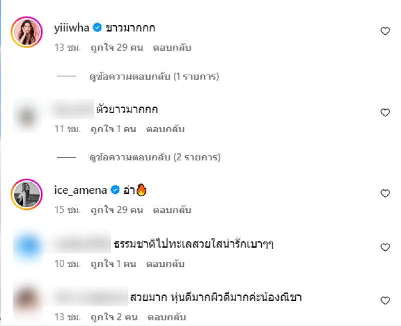 ท่ามกลาง เหล่าเพื่อนๆในวงการและแฟนคลับเข้ามาคอมเมนต์กันจำนวนมาก อาทิ แม่ยุ้ยยยยยยยไม้พร้อมจ้า,แม่เสือสาว ในตาสวย,ธรรมชาติไปทะเลสวยใสน่ารักเบาๆๆ,สวยมาก หุ่นดีมากผิวดีมากค่ะน้องณิชา เป็นต้น