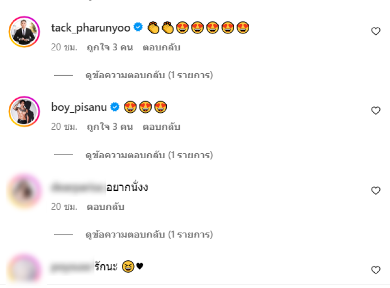 งานนี้ เหล่าดารามากมายในวงการ อาทิ บอย พิษณุ,แท็ค ภรัณยู,แจ๊ส ชวนชื่น เป็นต้น ได้เข้ามาแสดงความคิดเห็นด้วยเช่นกัน แล้วก็อดโฟกัสทะเบียนรถป้ายแดงไม่ได้จริงๆ เพราะว่าสวยด้วยกับเลข 5415