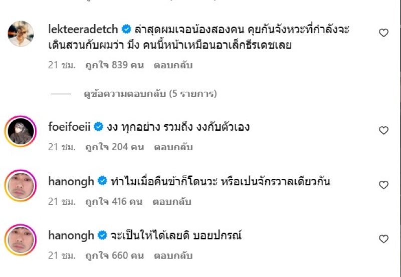 งานนี้ ทำเอาแฟนๆต่างเข้ามากดไลก์ อีกยังคอมเมนต์แซวต่างๆนาๆ ซึ่งหนึ่งในนั้นคือน้องชายของ บอย ปกรณ์ อย่าง หน่อง ธนา ที่บอกว่า "จะเป็นให้ได้เลยดิ บอยปกรณ์" และ ภัทร ฉัตรบริรักษ์ : "แล้วกรูที่เป็นหน่องธนามาตลอด เค้ารู้กันยังว่าบอยปกรณ์มีน้อง 2 คน"