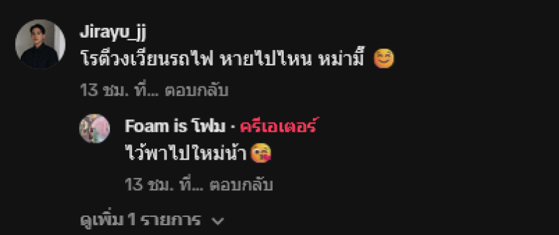 ซึ่งท่ามกลางประเด็นดราม่า โฟม ได้เคลื่อนไหวผ่านทางช่อง TikTok benjamasjuly โดยเผยคลิปเมนูอาหารอร่อยๆ แคปชั่นบอกว่า กินอะไรดีที่ลำปาง #foamisโฟม#ลำปาง#อาหารเหนือ ทั้งนี้ทางด้านสามีได้มีการเข้ามาคอมเมนต์ว่า โรตีวงเวียนรถไฟ หายไปไหน หม่ามี๊ โฟมได้ตอบกลับทันทีว่า ไว้พาไปใหม่น้า