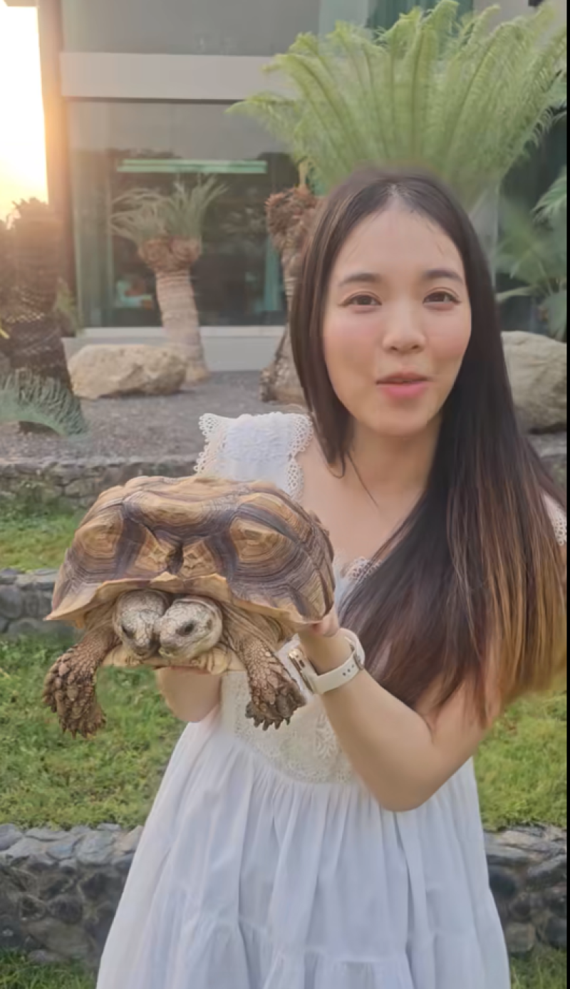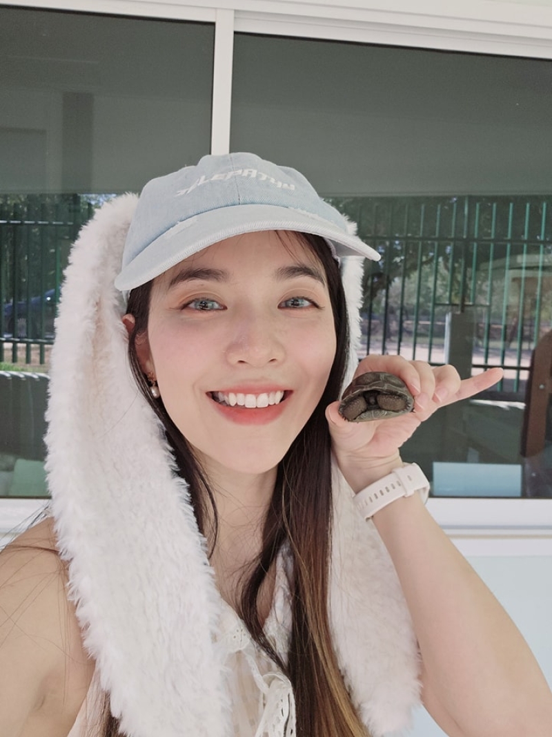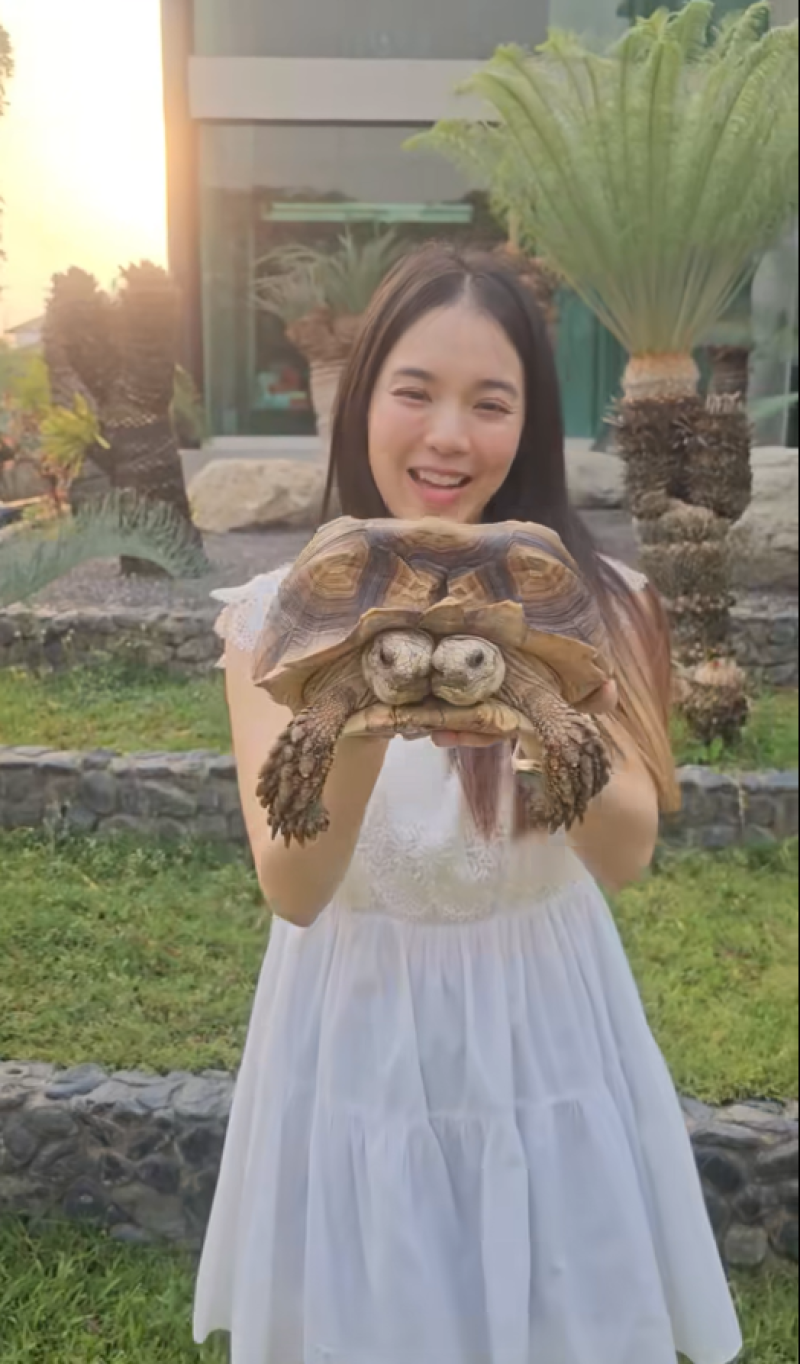 พร้อมเขียนแคปชั่นว่า ใส่ชุดเดิม...กับน้องเต่าตัวเดิม ผ่านมาแล้ว 5 ปี!! #รับบทแม่เต่า โดยเผยว่า น้องโตช้ามาก และเป็นเต่าที่หายากมากที่จะออกมา 2 หัว แล้วก็มีความสมบูรณ์ขนาดนี้ กินเก่งมากเพราะกระเพาะเดียวกัน