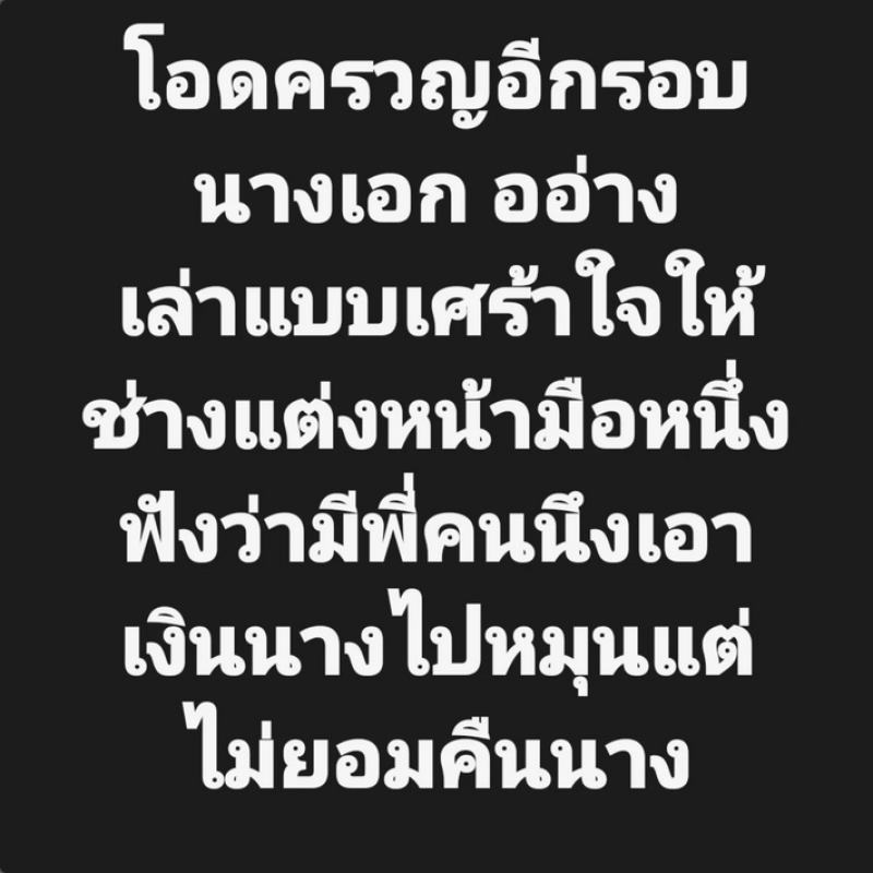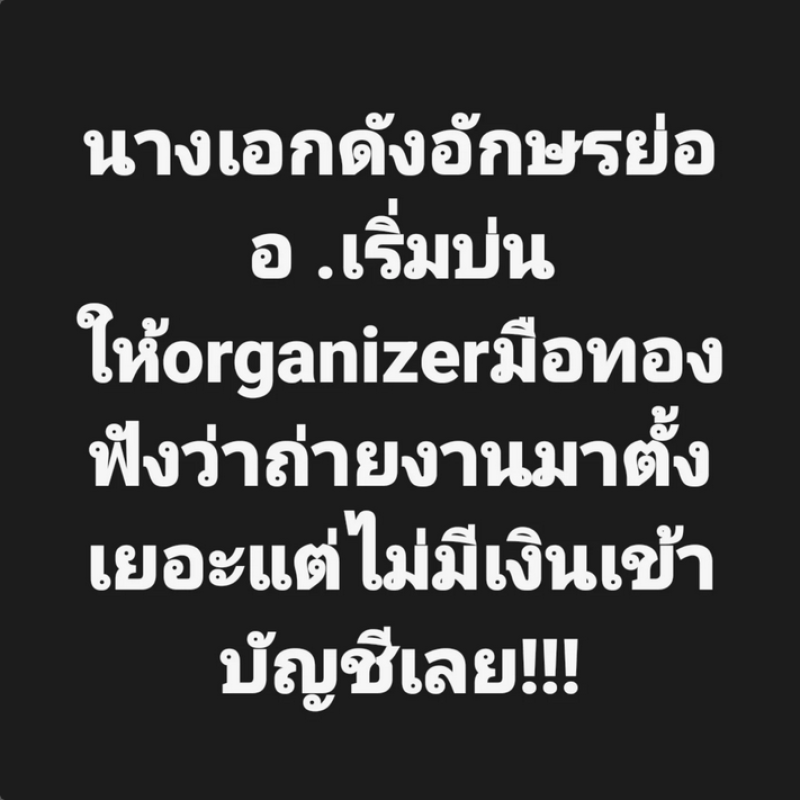 โดย เต๋า ทวีพูล ได้เผยผ่านทางอินสตาแกรม tao_tvpool ระบุว่า นางเอกดัง อักษรย่อ อ. เริ่มบ่น ให้ organizer มือทองฟังว่าถ่ายงานมาตั้งเยอะ แต่ไม่มีเงินเข้าบัญชีเลย !!! ต่อมาได้โพสต์ว่า อดครวญอีกรอบ นางเอก อ อ่าง เล่าแบบเศร้าใจให้ช่างแต่งหน้ามือหนึ่งฟังว่า มีพี่คนนึงเอาเงินนางไปหมุน แต่ไม่ยอมคืนนาง