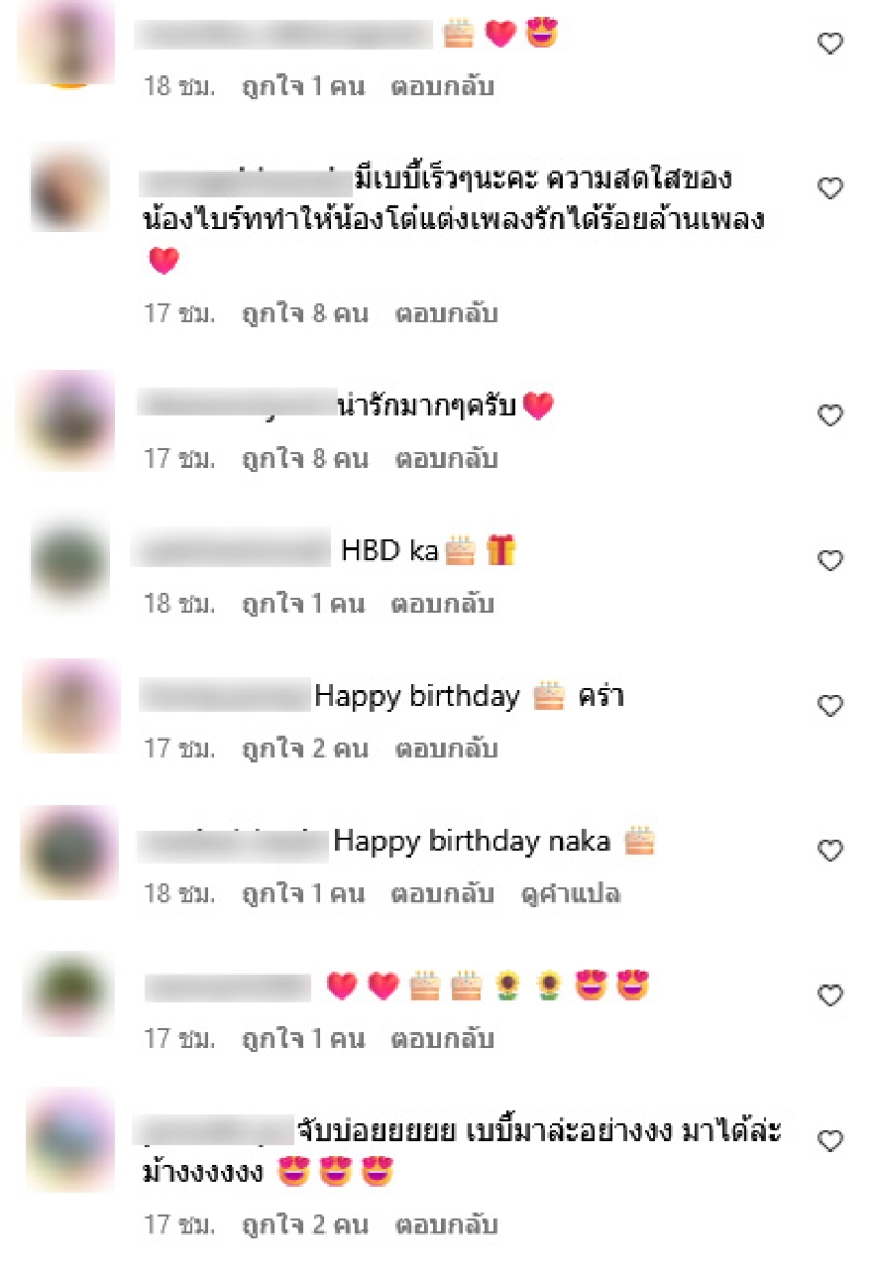 ท่ามกลางแฟนๆตางเข้ามาคอมเมนต์อวยพร และโฟกัสภาพที่โต๋ จับที่ท้องของภรรยาอีกด้วย อาทิ รูปจับท้องคือรูปจับเบบี้มั้ยคะ HBD นะคะ,หวานกว่าหมู่มวลดอกไม้ก็คู่นี้แหละ รักนะคะ HBD ค่ะ น้องไบรท์,มีเบบี้เร็วๆนะคะ ความสดใสของน้องไบร์ททำให้น้องโต๋แต่งเพลงรักได้ร้อยล้านเพลง,จับบ่อย เบบี้มาล่ะยัง เป็นต้น