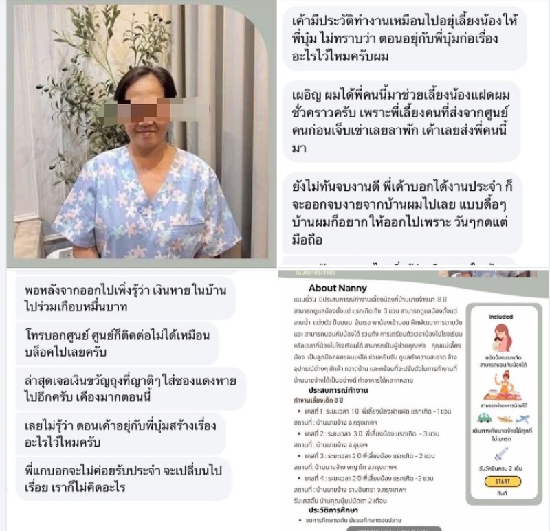 พร้อมกับชื่อใหม่ แล้วไปขโมยเงินเค้าแบบนี้ คุณหมอบอกว่าที่ยอมรับพี่เลี้ยงคนนี้เพราะเห็นว่าเคยเลี้ยงลูกบ้านคุณบุ๋ม บุ๋มก็เลยตกลงกับคุณหมอว่าเรามีความจำเป็นที่จะต้องไปแจ้งความ เพื่อให้มีประวัติอาชญากรรมเพื่อไม่ให้ไปทำกับบ้านอื่นอีก และขอลงประกาศว่าพี่เลี้ยงคนนี้ มีพฤติกรรมที่ไม่เหมาะสม และไม่อนุญาตให้ศูนย์พี่เลี้ยงที่ใหม่เอาไปอ้างอิงแบบนี้ค่ะ เสียใจมากเลยค่ะตอนนี่