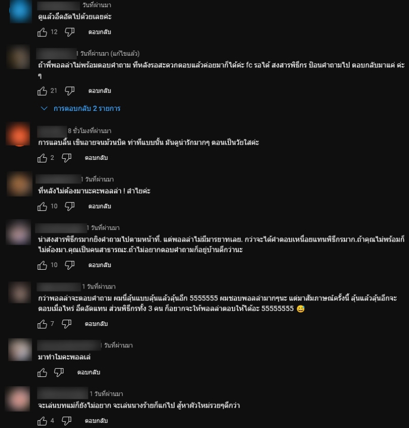 แต่ทั้งนี้กลับมีชาวเน็ตเข้ามาคอมเมนต์ถึงการให้สัมภาษณ์ของ พอลล่า กันอย่างมาก อาทิ ถ้าพี่พอลล่าไม่พร้อมตอบคำถาม ทีหลังรอสะดวกตอบแล้วค่อยมาก็ได้ค่ะ fc รอได้ สงสารพิธีกร ป้อนคำถามไป ตอบกลับมาแค่ ค่ะๆ,จริงอย่างที่ เมนต์ๆก่อนหน้า เป็นต้น